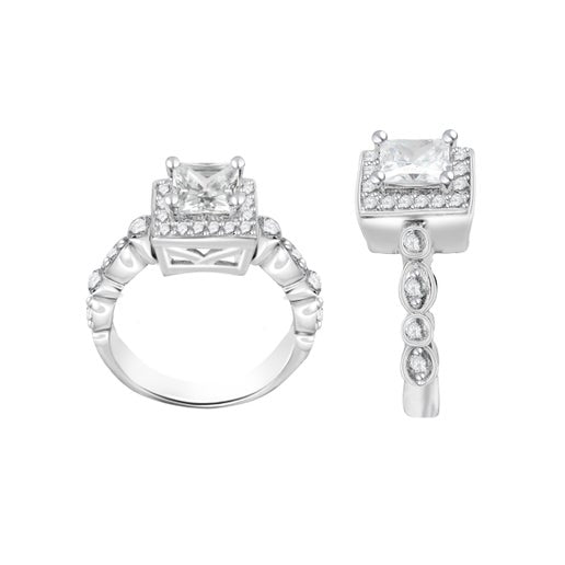 Revel in the majestic radiance of this prong-set ring, featuring an exquisite radiant-cut diamond.