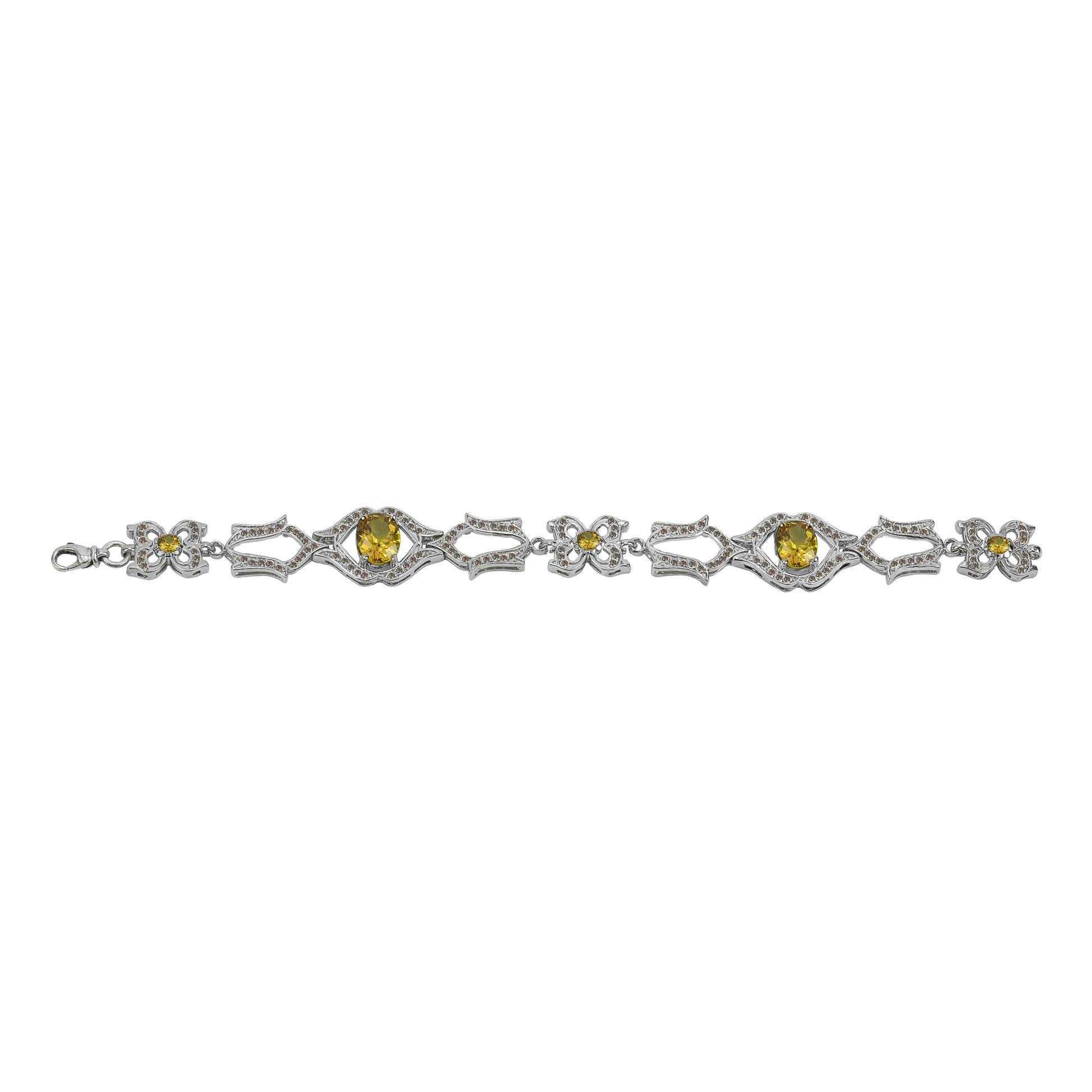 This type of bracelet typically features a central citrine gemstone, often cut in an oval shape, surrounded by sparkling diamonds set in gold. The warm, golden hues of the citrine complement the brilliance of the diamonds beautifully, creating a stunning piece of jewelry.