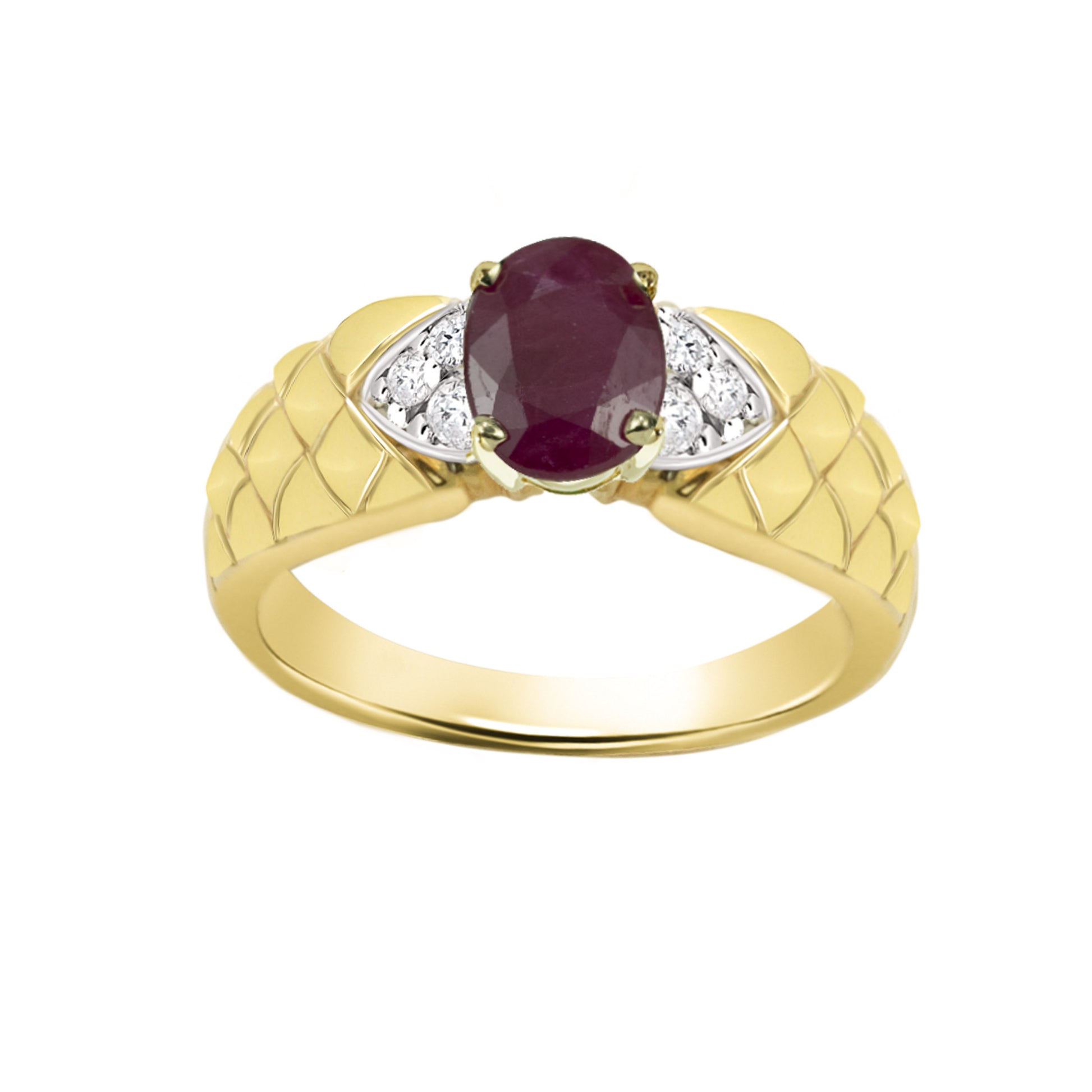 Ignite your love with the "Ruby Rose Diamond Blaze Ring." Crafted in gold, this ring features a fiery ruby birthstone and diamonds, creating a blaze of passion and romance in a burst of red hues.