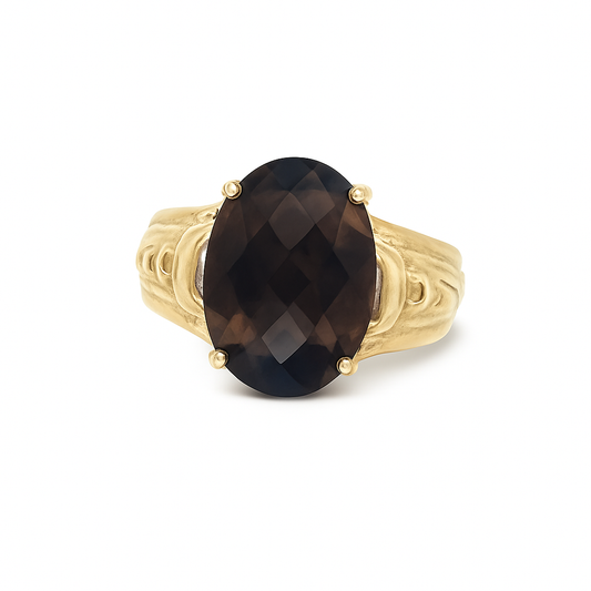 Smoky Topaz Oval-Cut Birthstone Gold Ring