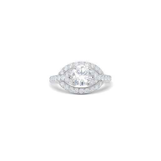 Like stars cascading in the night sky, this prong-set ring showcases a constellation of round diamonds.